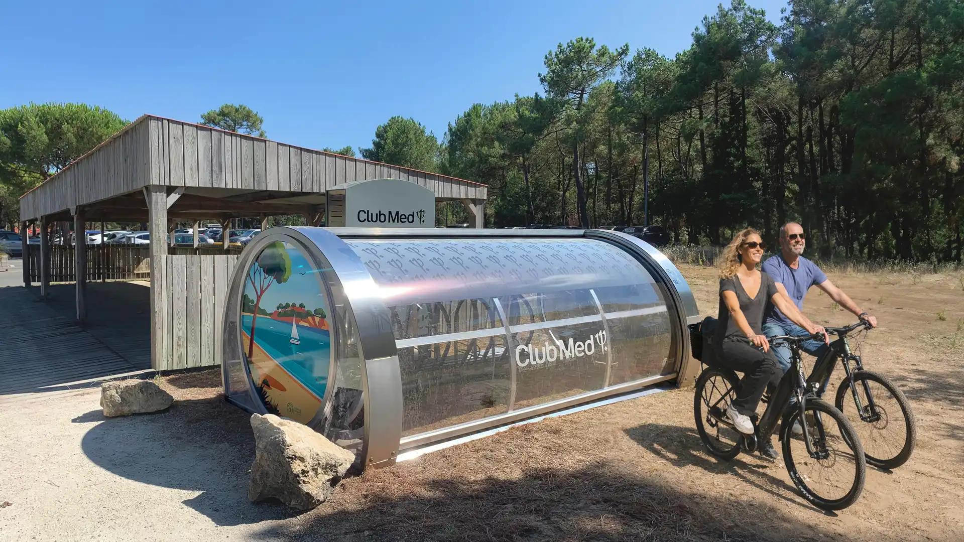 COFFRE est un parking pour vélos et trottinettes d’une capacité maximale de 20 places. Sa géométrie cylindrique et transparente lui permet de réduire l’impact visuel. Ses dimensions sont optimisées pour ranger le plus grand nombre de vélos dans le plus petit espace possible.